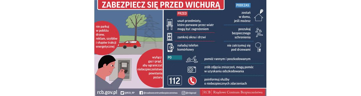 Zostań w domu jeśli możesz do czasu ustania niebezpiecznych zjawisk, przygotuj się na przerwy w dostawie prądu i wody.