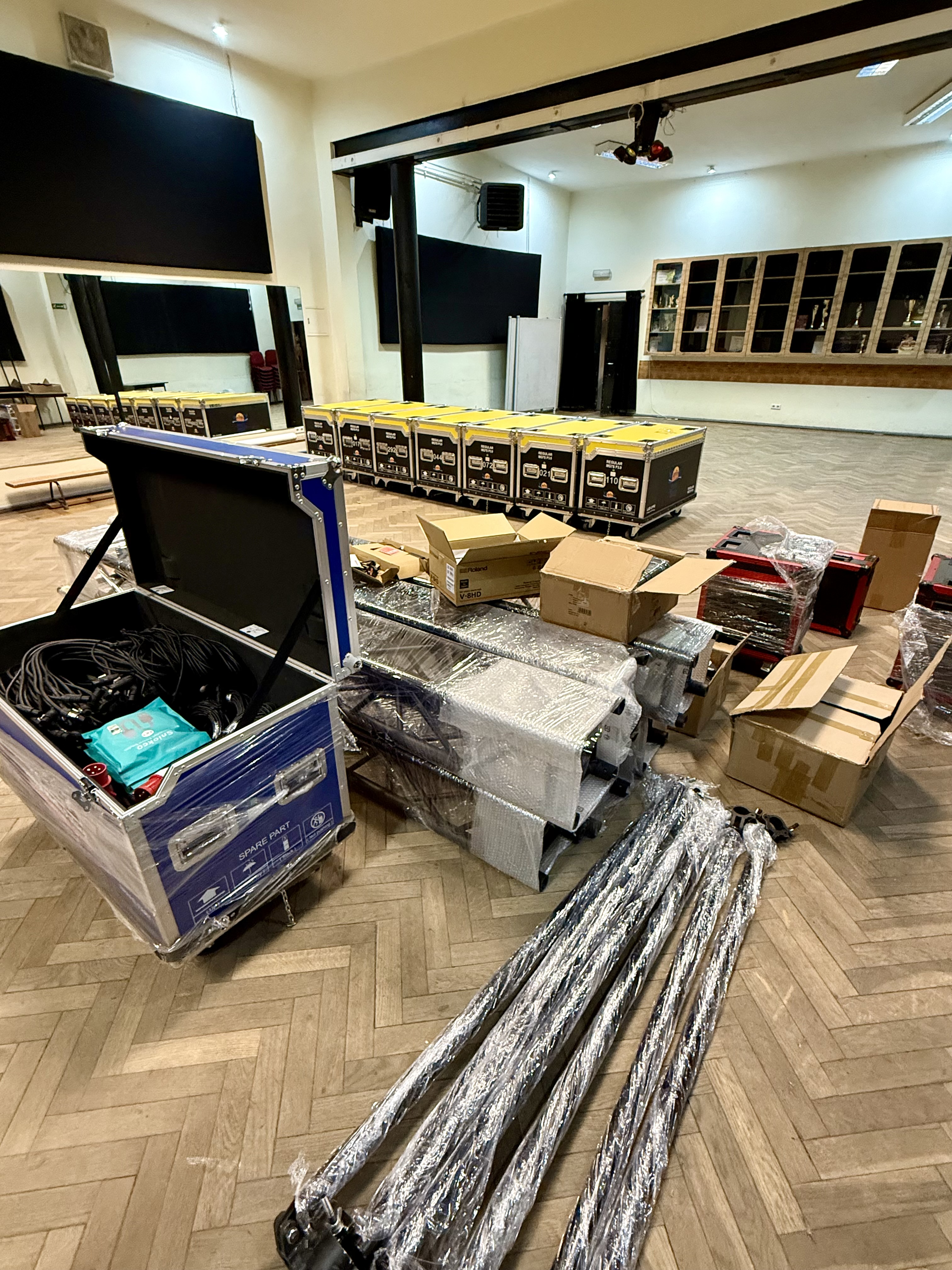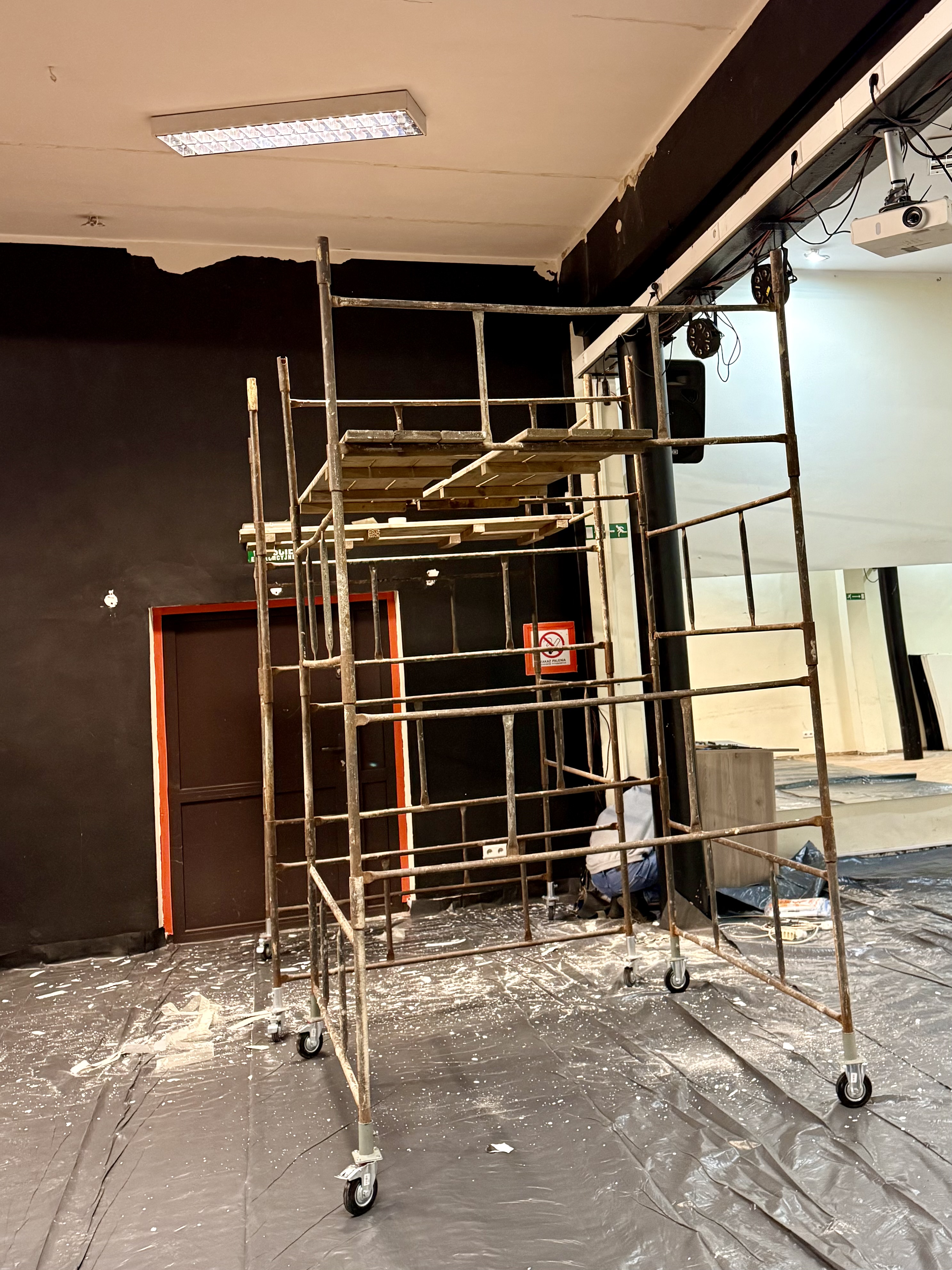 1. Czekamy jeszcze na regały magazynowe oraz kurtynę sceniczną.